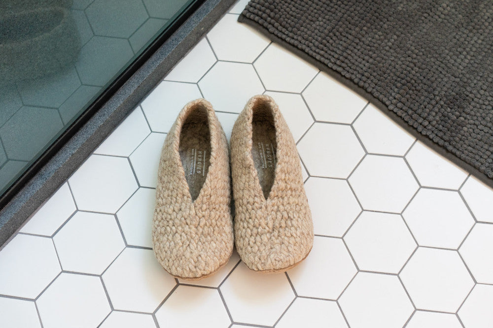 Kyrgies house shoes are handmade from all-natural materials in a women-owned, fair-wage workshop in Kyrgyzstan, using ethically sourced Kyrgyz wool and age-old felting traditions from the Asian Steppe.Our producers are globally recognized for helping preserve a UNESCO-protected nomadic felting tradition, leveraging this wisdom to make products that are soft, durable, and plastics-free.