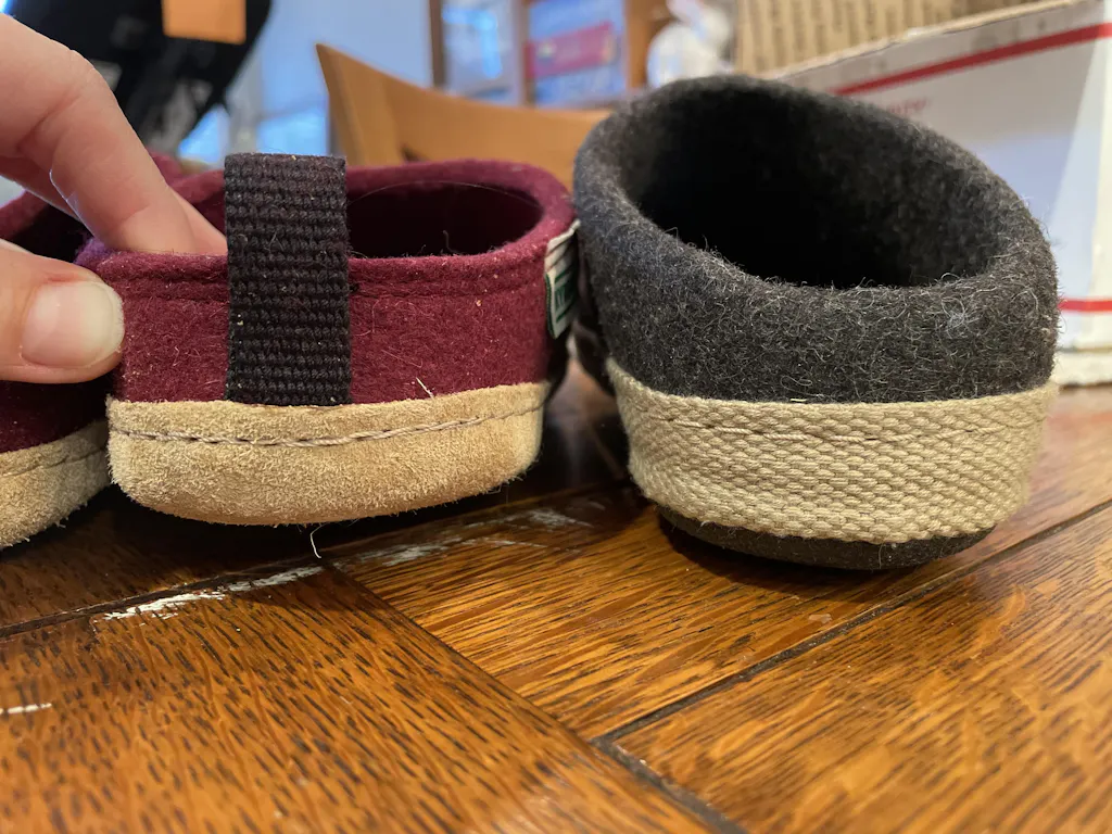 We don’t recommend it. All Kyrgies are made from felted wool and can easily shrink or lose their shape in the washing machine. It can also cause the leather soles on certain styles to bleed. If your Kyrgies are looking a little dirty, try spot cleaning with a dry brush, or if necessary, a gentle wool-friendly detergent and a damp cloth. Dry cleaning is also an option.