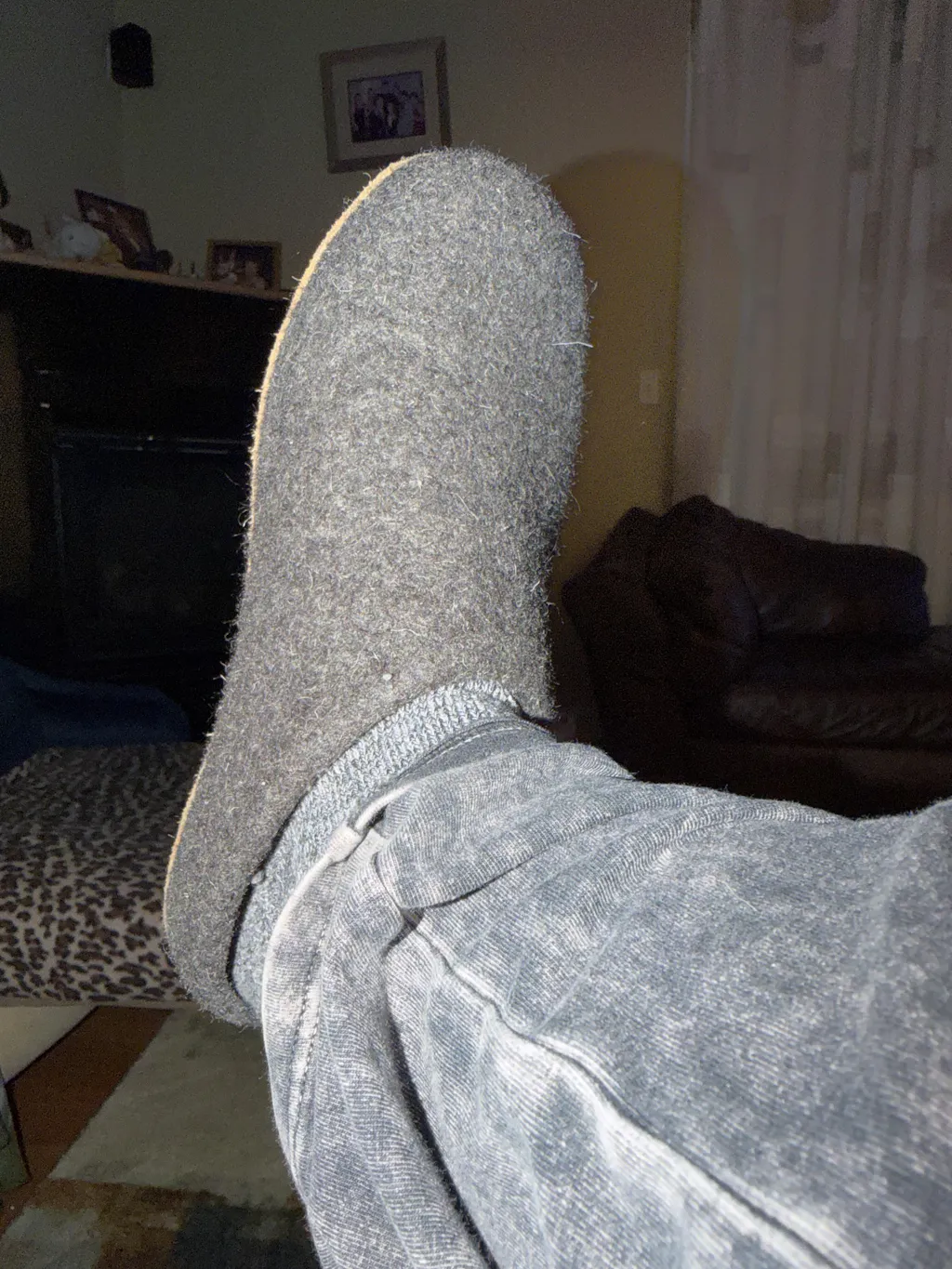 Unfortunately, any showcasing of your brand new slippers should take place inside the home. Kyrgies are designed to face the Great Indoors; wearing them out on the drive, pottering around the garage or roaming around the garden will only lead to misshapen wool felt for your shoes and bitter disappointment for you. Seriously, keep them indoors.