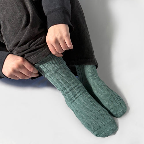 These have quickly become the favorite pair in our sock drawers and are easy to wash and care for. Because of the natural materials used, the fit of these socks will gradually loosen if worn multiple times between washes, but will snap right back to their original fit after a quick spin in the dryer, time and time again. We encourage you to wash and dry after each wear for optimal fit and comfort!