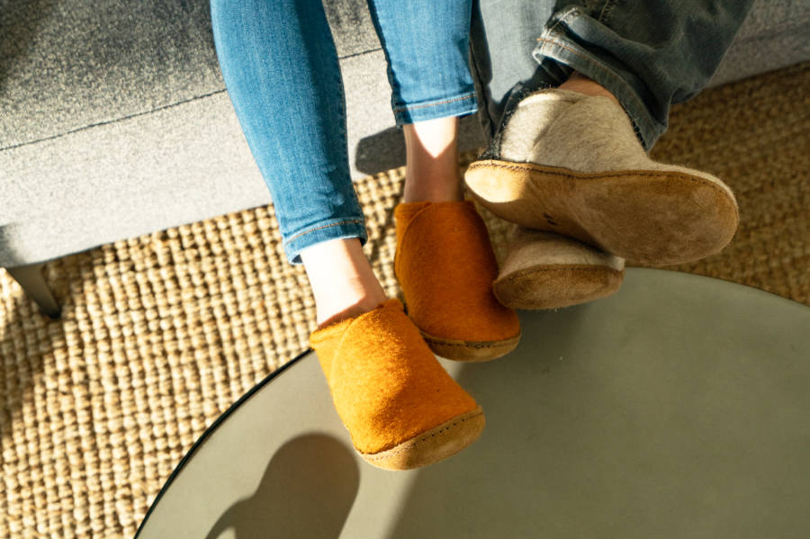Kyrgies Classics are our original rolled wool felt slippers, shaped for a neutral foot and built for everyday wear. Their durable sole is made from wool felt, polyester, and coated with natural latex.