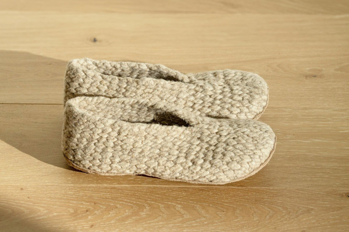 Handmade by a women’s cooperative in the Alay Valley of southern Kyrgyzstan, these slippers are naturally moisture-wicking, odor-resistant, and ideal for wider or more sensitive feet. With a cozy feel and slightly higher back, they’re your perfect companion for comfort at home, or wherever life takes you.